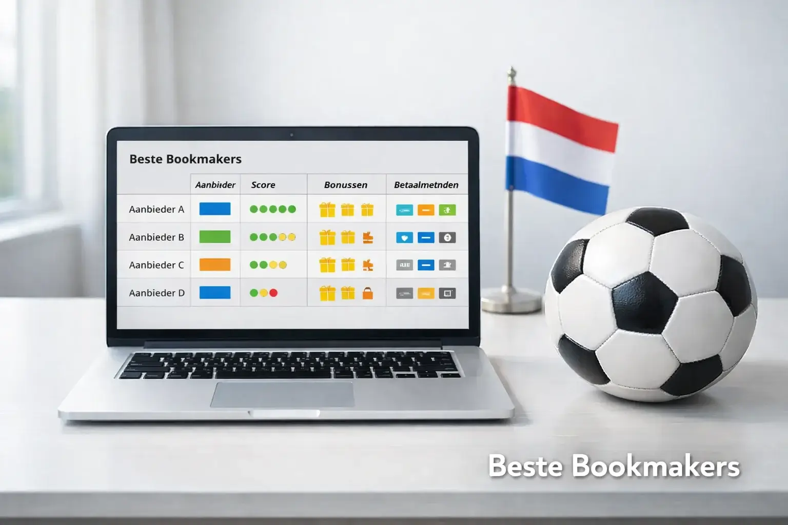 Deze gids beoordeelt de belangrijkste legale bookmakers voor voetbalwedden in Nederland. Niet op basis van marketingbeloftes, maar op de criteria die ertoe doen voor de actieve wedder: odds-kwaliteit, breedte en diepte van het voetbalaanbod, app-functionaliteit, betaalmethoden en klantenservice. Het doel is niet om je naar één bookmaker te sturen, maar om je te helpen een geïnformeerde keuze te maken — of beter nog, meerdere geïnformeerde keuzes.